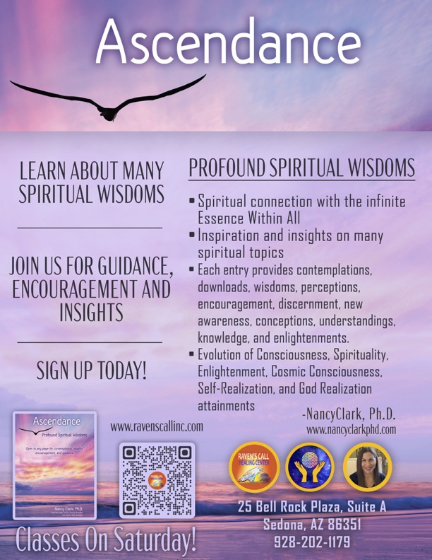 Deep dive into the Ascendance book with author Nancy Clark, Ph.D., every first and third Saturday of the month, beginning on April 4, 2026, from 1:30 PM to 3:30 PM. $44 per class session, with 6 sessions available in the full series. Come join us at one or all!